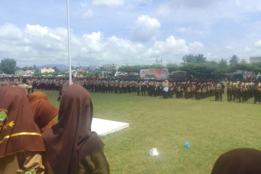 PADANG LAWAS – Pemerintah Kabupaten (Pemkab) Padang Lawas bekerjasama dengan Kwartir Cabang (Kwarcab) Gerakan Pramuka Kabupaten menggelar Upacara Peringatan Hari Ulang Tahun (HUT) Pramuka ke – 63 tahun 2024, bertempat di Lapangan MTsN 1 Padang Lawas, Rabu (24/9/24).